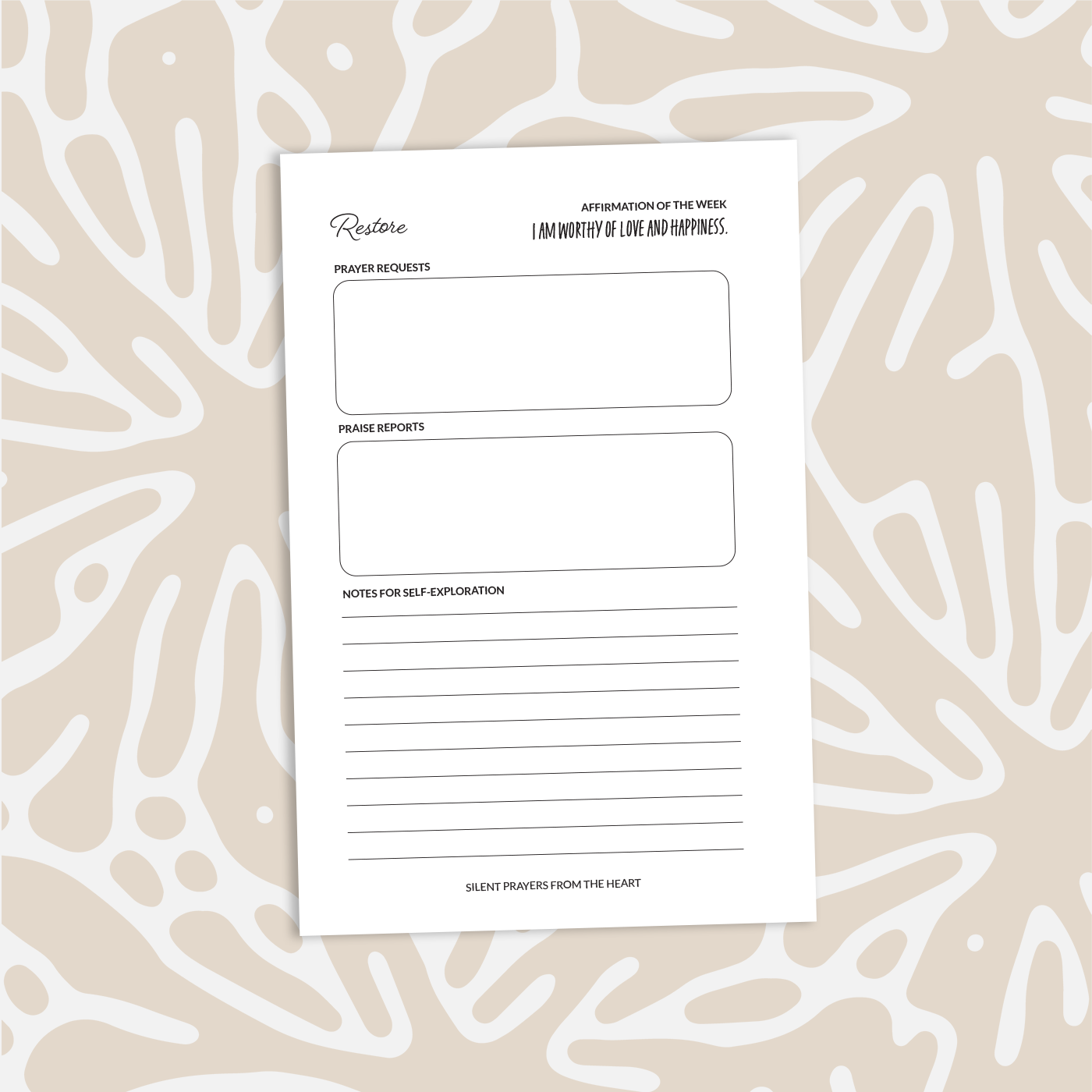 Restoration awaits. Fill these pages with the whispers of your prayers and the burdens of your worries. Allow your tears, whether of sadness or joy, to grace these ruled lines as you journey forward in your walk with God.